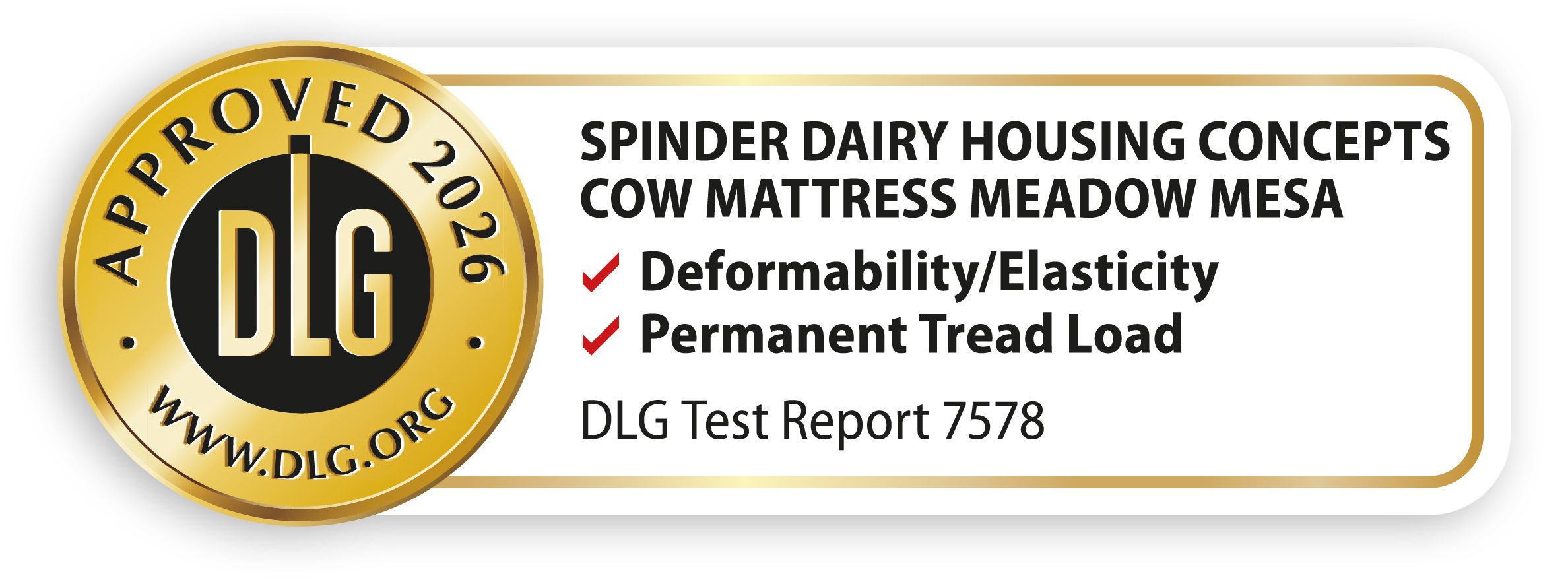 The Meadow Mesa is DLG APPROVED and fully meets the requirements of the DIN 3763 standard for deformability, elasticity, and permanent tread load. This independent seal confirms that the mattress withstands years of intensive use without sinking, with simulations equivalent to tens of thousands of impressions from a 1000 kg cow.